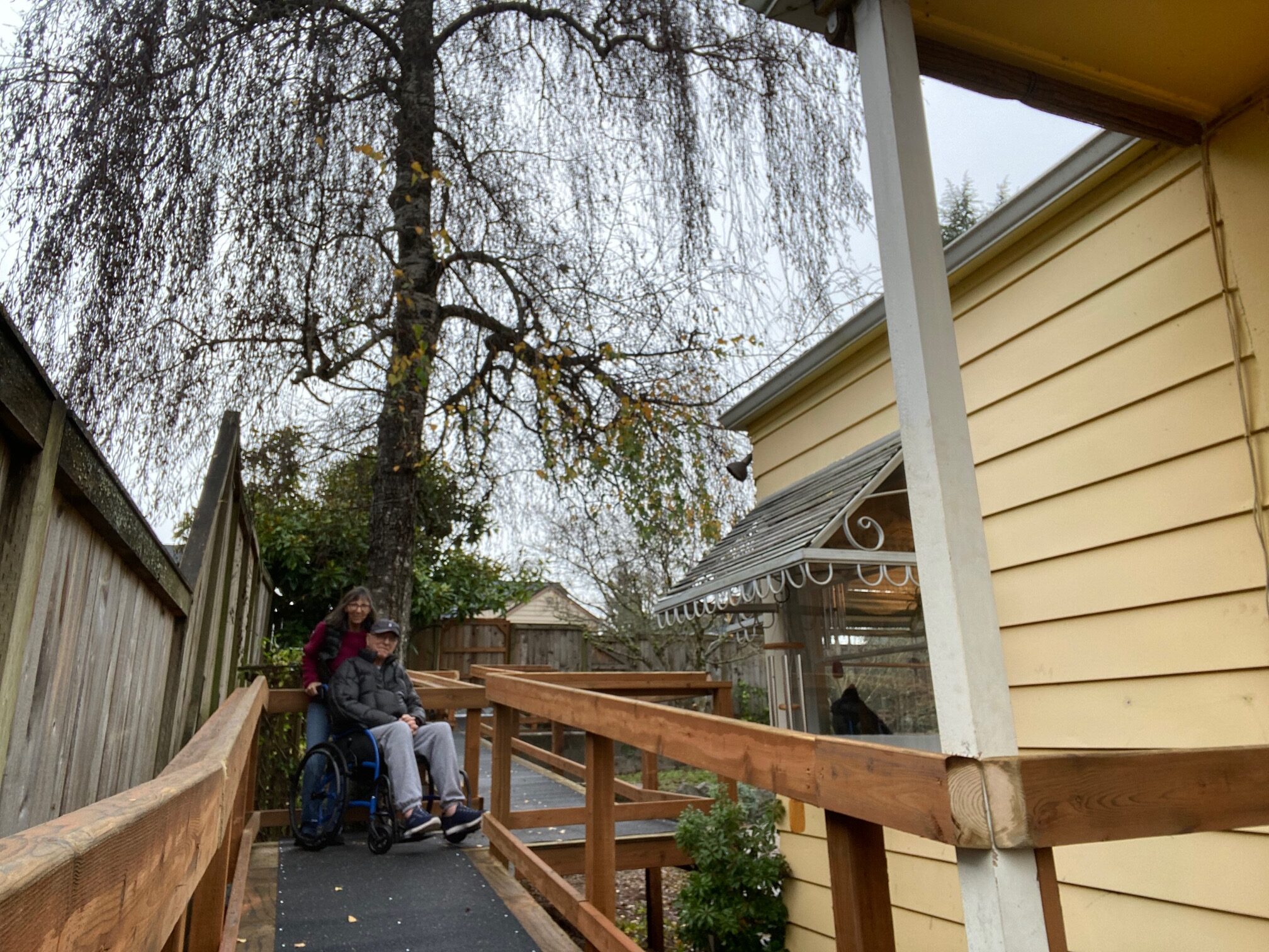 The Peninsula Service Organization Bluebills got right to work with the help of funding from the 2025 Community Investment Grant, awarded to them by the Port Gamble S’Klallam Tribe (see previous post PGST’s 2nd Round of 2025 Community Investment Grants, another $125,000, to PSO Bluebills and Meals on Wheels Kitsap). Their Bremerton lead, Bruce Weber, and a crew built a 60+ foot ramp for a low-income Bremerton client using the grant funds. The couple sent a touching follow-up email to Bob Keever, Bluebills Chairman, stating, ” To the Esteemed Members of the S’Klallam Tribe, thank you for your donation. You made it possible to have a much-needed ramp installed to help my husband who has Parkinson’s disease. He has struggled to leave the house, and the all-consuming fear of falling is real. The first wheelchair ride on the new ramp brought tears to our eyes…You have literally and figuratively given him a new vision for his future…and helped with the dream that I think most of us have, which is to safely age in place and focus on loving and caring for one another. You are truly what excellence in the community looks like!” They also applauded the Bluebills crew for their careful “consideration for safety, ease of use, (and) conservation of trees and foliage” as they designed and built the ramp for the couple. Their joy and camaraderie as a team was evident and “inspiring”.